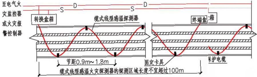 圖3. 線型感溫火災探測器在電纜表面S 型敷設示意圖