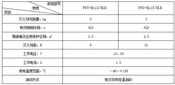 車用鋰電池箱D類干粉自動(dòng)滅火裝置主要技術(shù)參數(shù)