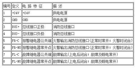 所有信號線和電源線宜采用截面積大于1.0mm的導線,并嚴格按規范要求進行布線,其中探測器外殼應良好接地。探測器接線定義見下表: