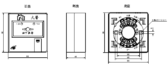 三、J-SAP-EI6021型手動火災報警按鈕外形及安裝尺寸