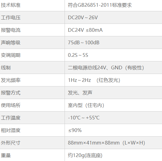 具有2種報警聲調(diào),聲壓級高、功耗低、工作可靠