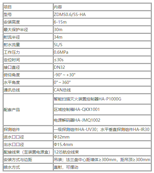 二、ZDMS0.6/5S-HA自動(dòng)跟蹤定位射流滅火裝置 消防水炮技術(shù)參數(shù)