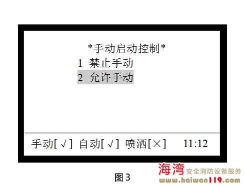 在圖2界面下,按1 進(jìn)入“手動(dòng)啟動(dòng)控制”界面如圖3所示。